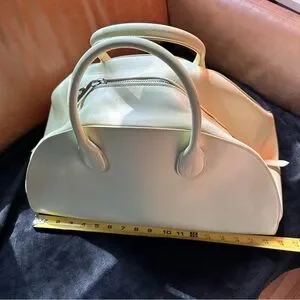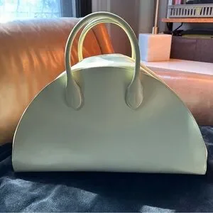 Amazing lime yellow chartreuse supple leather bowling large bag satchel.