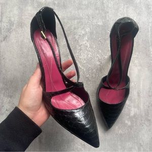 Step out in style with these elegant black stiletto heels. Perfect for any occasion, these shoes offer a sleek and sophisticated look.*** heel needs repair****