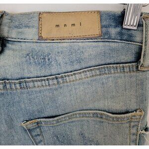 MNML Denim Distressed Button Fly Shorts w/ Chain Detail & Frayed Hem Men's Sz 30