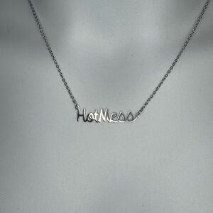 Show off your personality with this bold Hot Mess necklace. Crafted on a durable stainless steel chain with a lobster claw closure, this necklace adds a playful edge to any outfit. Perfect for layering or wearing solo.