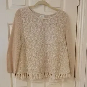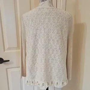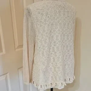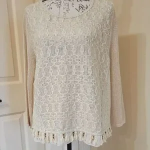 Chico's Boho Style Cream Lace Blouse with Fringe And Lace
