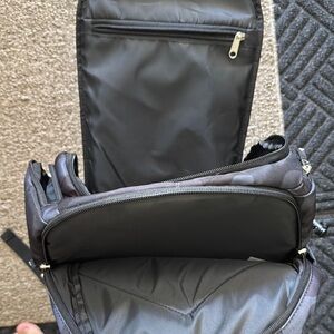 Gently used. Stylish and durable, the black men's pickleball backpack is perfect for everyday use. Shoe pockets snd Paddle Sleeve. Featuring a sleek design, this bag offers ample space and comfort.