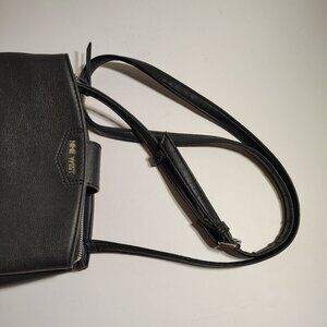 NINE WEST Purse Faux Black Leather Tri Compartment Compact Crossbody Bag