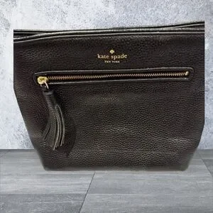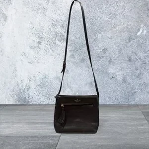 Chic black leather crossbody by Kate Spade. Features a stylish tassel and front zipper pocket. Perfect for daily essentials.