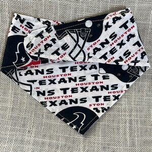 Is your pup a Houston Texans fan?! This is a homemade bandana featuring their logo and team colors. Velcro adjustable to fit approximately 11.5”-14.5” neck. Cotton blend. New, unused. Homemade with love by a novice seamstress.