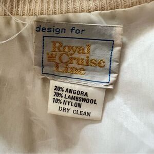This beaded cardigan sweater is 20% angora 70% lambs will 10% nylon.