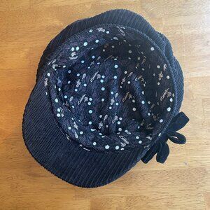 NWOT Size L H&M black corduroy newsboy cap with black velvet bow