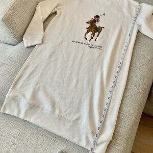 Ralph Lauren Ivory White Polo Bear on Horse Cotton Fleece Sweatshirt Tunic Dress