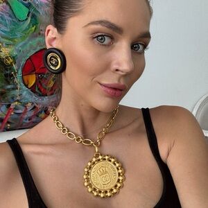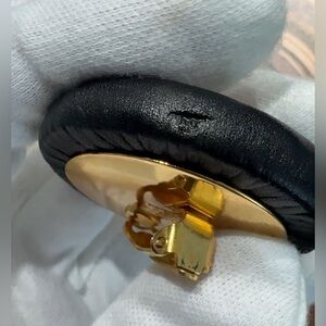 HUGE 24K gold plated CHANEL vintage leather clip on earrings