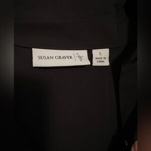 Susan Graver Black Silver Sequin Button Up Blouse Size Medium