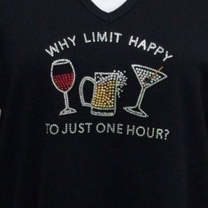 Why Limit Happy To Just One Hour Wine Rhinestone T-Shirt ~ Large