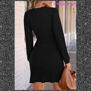 PrettyGarden NWT Black Ruched Bodycon Long Puff Sleeve Mini Dress in Black Sz S, Amazon Retail $56, 95% polyester, 5% elastane, stylish ruffle hem, empire waist, front top center neck measured down front about 33.5”, armpit to armpit across chest lying flat about 16”, top center shoulder seam measured down sleeve 24”, back top center measured down back about 34”, please know your size & look at measurements before purchasing •No Trades•