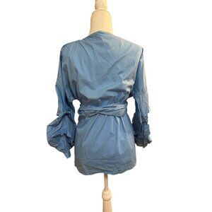 NWT Aomei Blue Wrap Blouse Puff Sleeves & Waist Tie 2XL