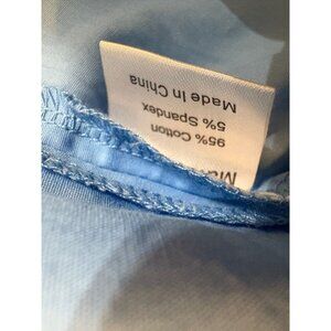 This NWT feminine and flattering Aomei light blue wrap blouse features puffed balloon sleeves and adjustable waist tie. 95% cotton, 5% spandex. Size 2XL. Perfect for professional office wear or going out.