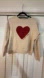 Stylish cream sweatshirt featuring a bold red heart design. Perfect for casual wear.
