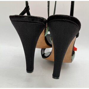Sz 7 B - 7.5 ICONIC Vintage Halston Roses Disco Sandals 1970s Cocktail Evening