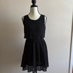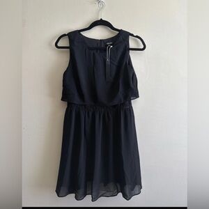 Chic black midi dress with a sleeveless design. Perfect for versatile styling.