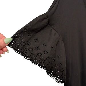 Pink Rose Vintage Black Eyelet Sleeve Blouse Size Large