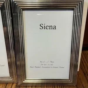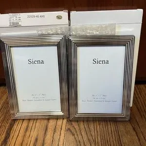 Pair of Siena 4x6 silver plated and lacquer coated frames. Simple and classic designed frames. In perfect condition and in original boxes. Purchased originally for $15 each.