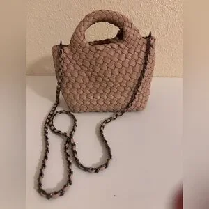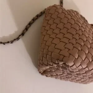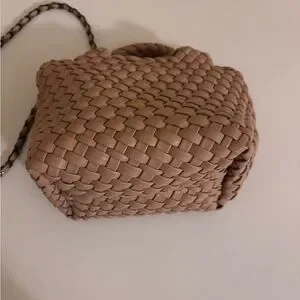 Super cute mini tan woven faux leather crossbody bag