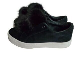Sam Edelman Women's Black Leya Pom-Pom Faux Fur-Embellished Velvet Sneaker Size 7.5M