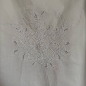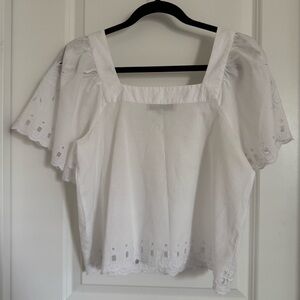 Elegant ivory blouse with eyelet and embroidered floral details by LOFT. Features a square neckline and puff sleeves. 100% cotton- super light and comfy material!Ideal for casual elegance and will go great with any color!