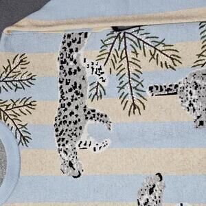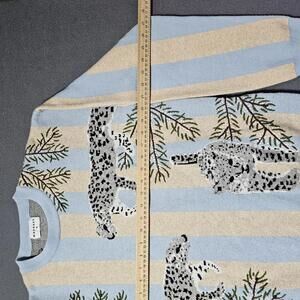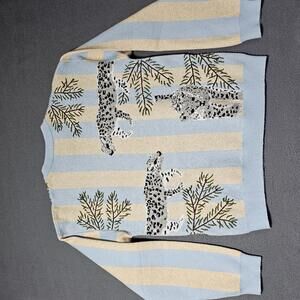 MAVRANS Men's Sweater RARE M Blue Beige Striped Leopard Print Knit Pullover Cat