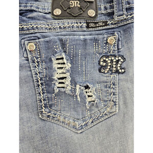 Excellent condition Miss Me Embellished Denim Jeans. Raw Hem cut off style. Easy shirts. Clean. No stains. Ladies size 31