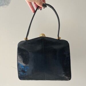 Elegant Vintage Black Eelskin Kisslock Leather Handbag