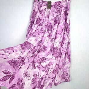 NEW J Jill 10 Women's 100% Linen Flowy Full Maxi Skirt Lined Purple Floral