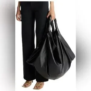The Leo bag is crafted from buttery vegan leather and rendered in classic black. The ultra-roomy silhouette boasts wide straps and can be worn over the shoulder, or carried as an oversized clutch. Shop Bags Styling Tip: Wear as a clutch with an all-black ensemble.