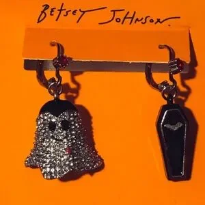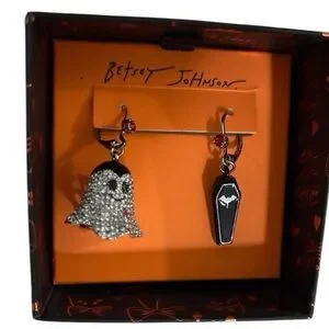 BETSEY JOHNSON Halloween Mismatch Crystal Ghost & Coffin Dangle Earrings NEW NWT