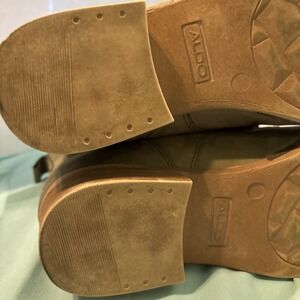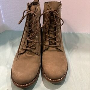 ALDO Sandstone Tan Suede Almond Toe Ankle Heel Booties Womens 8.5 NWOB Lace/Zip