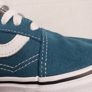 Vans Unisex Old Skool Skate Shoes are featured in “Stargazer Blue,” a vibrant blue-green hue. Constructed from premium suede and canvas, these casual lace-up low-top sneakers feature classic white trims and stripes.