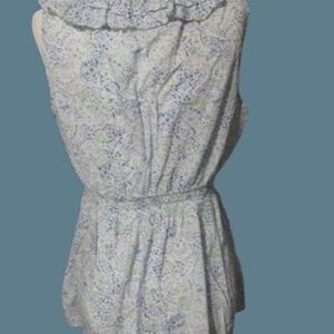 NWOT Romy Blue and White Floral Ruffle Blouse Gathered At Waste Size XL