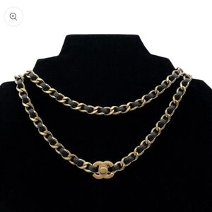 CHANEL Matelassé CC LOGO Trun Lock Chain/Leather Belt Gold