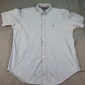 Ralph Lauren Mens Button Down Shirt Blue Plaid Classic Fit Short Sleeve Large