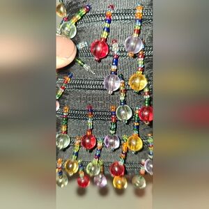 Embellished with colorful dangling beads.