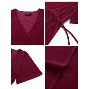 Fashion Design: Classic long velvet dress, v neck, bell sleeves, slim wrap design, tie waist, split hem, full length, solid color, comfortable fit, beautiful fabric weight and drape, suits for all year round.