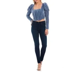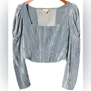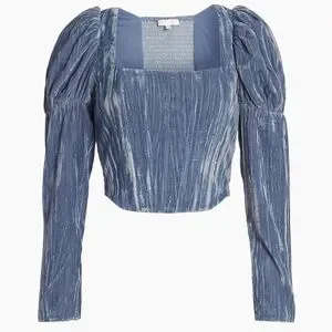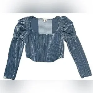 Wayf Velvet Bustier Corset Top Juliet Sleeves Blue Women’s Size Medium