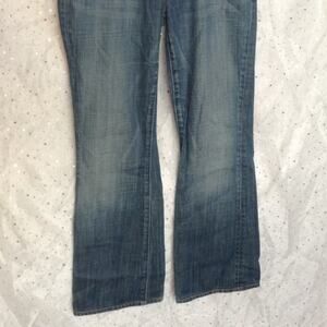 Joe's Jeans boot cut factory faded jeans distressed in just the right places. 98% cotton, 2% spandex for just the right amount of stretch.