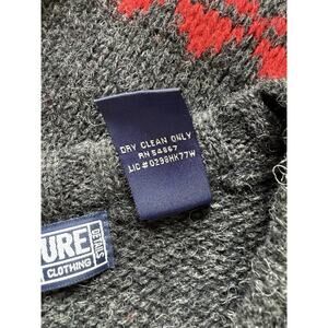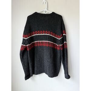 VINTAGE Structure Sweater Men Large Gray Red 100% Wool Nordic Grandpa
