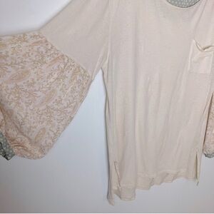 Free People We The Free Jade Long Sleeve Top women's blouse featuring a cream body with pink sleeves. Perfect for a stylish and comfortable look.