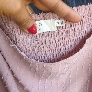 Peplum Top Square Neck Long Balloon Sleeve Smocked Blouse Pink, XL