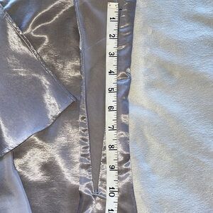 Banana Republic Heritage Champagne Satin Cami Double Spaghetti Straps Size 10. Interesting Strap details in back. Cascading ruffle down front. 10” Side Zip. Fully Lined. Excellent condition. Approximate measurements in photos.