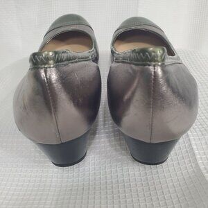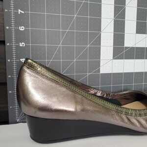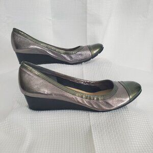 Cole Haan Nike Air Size 11 11M Pumps Wedge Round Patent Cap Toe Silver Green