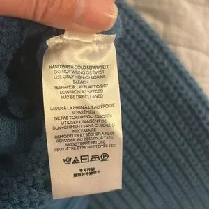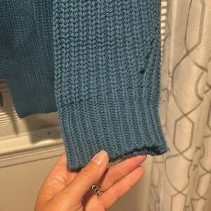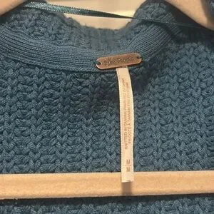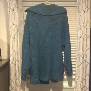Chic teal cardigan with large buttons. Perfect for layering. Adds style to any outfit. Size med