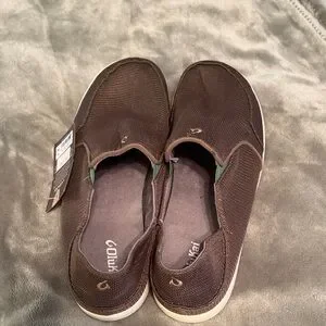 New With Tags Size 14 Stylish OluKai slip-on shoes in dark brown. Ideal for everyday comfort.