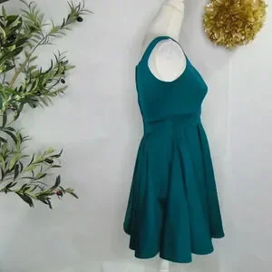 This stunning dress from Alya is the perfect addition to any wardrobe. The button front A-line design in a beautiful green color will have you looking and feeling your best. The sleeveless and scoop neck design make it perfect for warmer weather, while the polyester material ensures it will last. The dress is in excellent shape and ready to be shipped to you today.