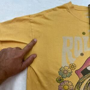 American Eagle Women's Band T-Shirt Size M Rolling Stones Graphic Butter Yellow